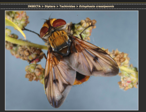 Diptera 70 selections to be cut into 30 series 1 and 40 series 2 images of 159 species on the Asian hornet's menu. A nest devours 11 kg of insects a year. Its favourite food: bees.