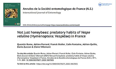 Coleoptera-mecoptera-Neuroptera-Fannia-Dryomyza-Dermaptera-Dictyoptera 19 out of 159 species on the Asian hornet menu. A nest devours 11 kg of insects per year. Favourite food: Bees Illustrative photos